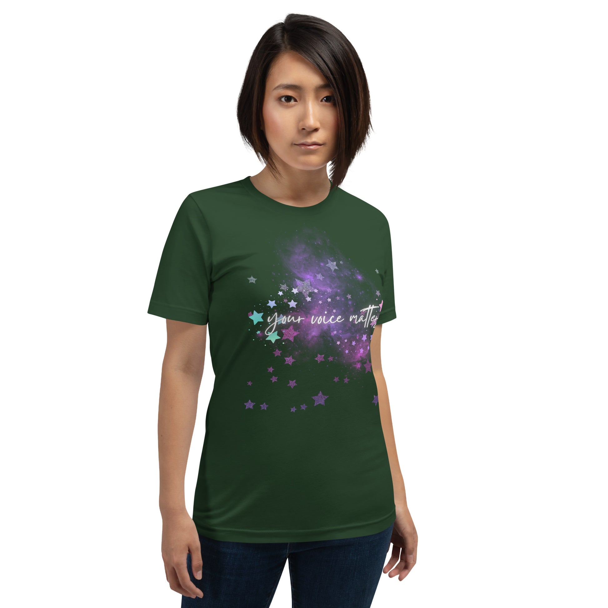 Statement Front: The bold, impactful message "Your Voice Matters" takes center stage, reminding you and those around you that your thoughts, opinions, and experiences are significant.