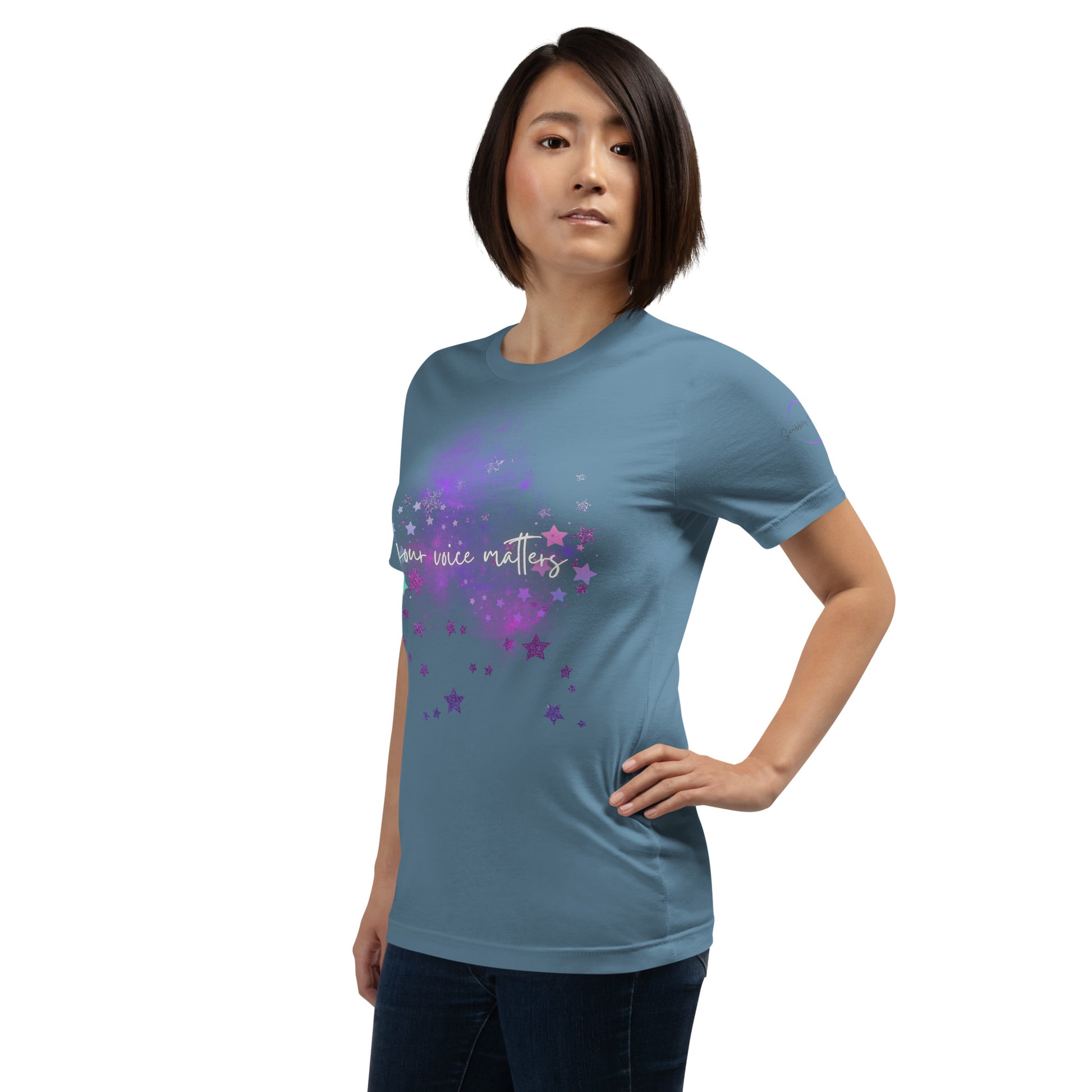 Wear It With Purpose: Pair this tee with your favorite jeans, a skirt, or layer it under a blazer—whatever your style, let the message shine through. It's not just about making a fashion statement; it's about wearing your values and encouraging others to find strength in their voices.