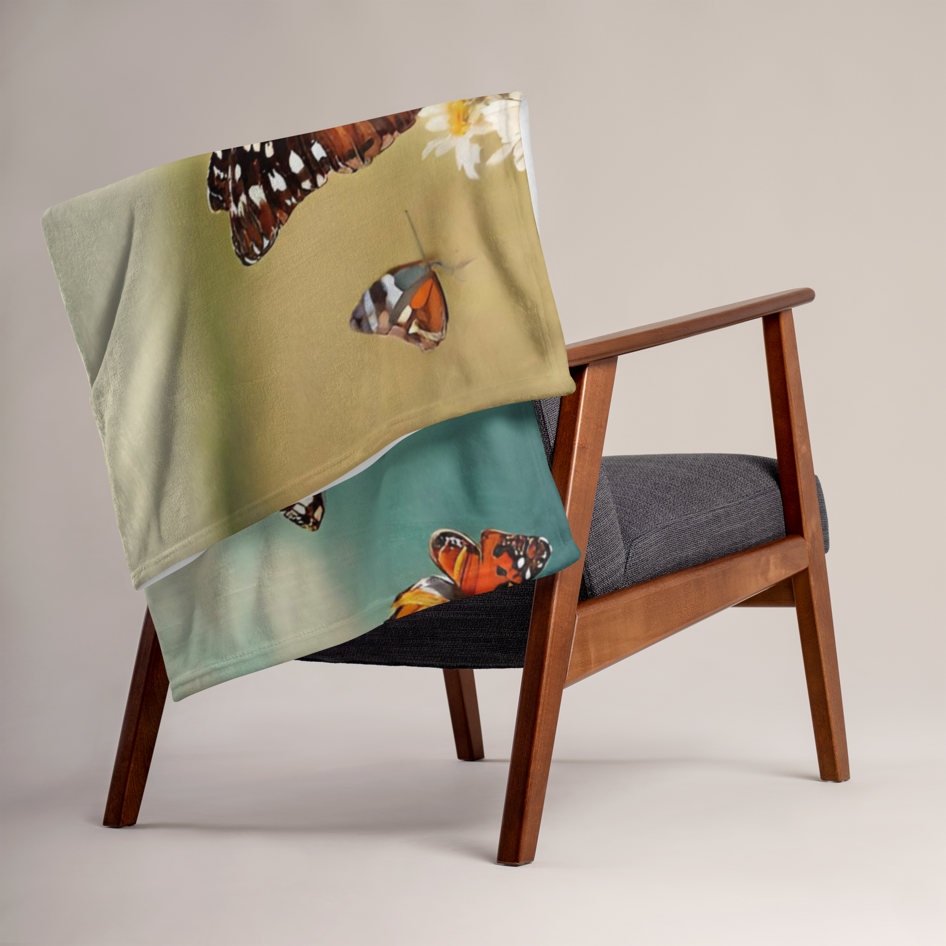 Butterfly Ballet Design: Immerse yourself in the enchanting world of butterflies with our thoughtfully designed throw blanket. The delicate dance of these winged beauties creates a visual symphony, symbolizing resilience, transformation, and the courage to spread your wings.