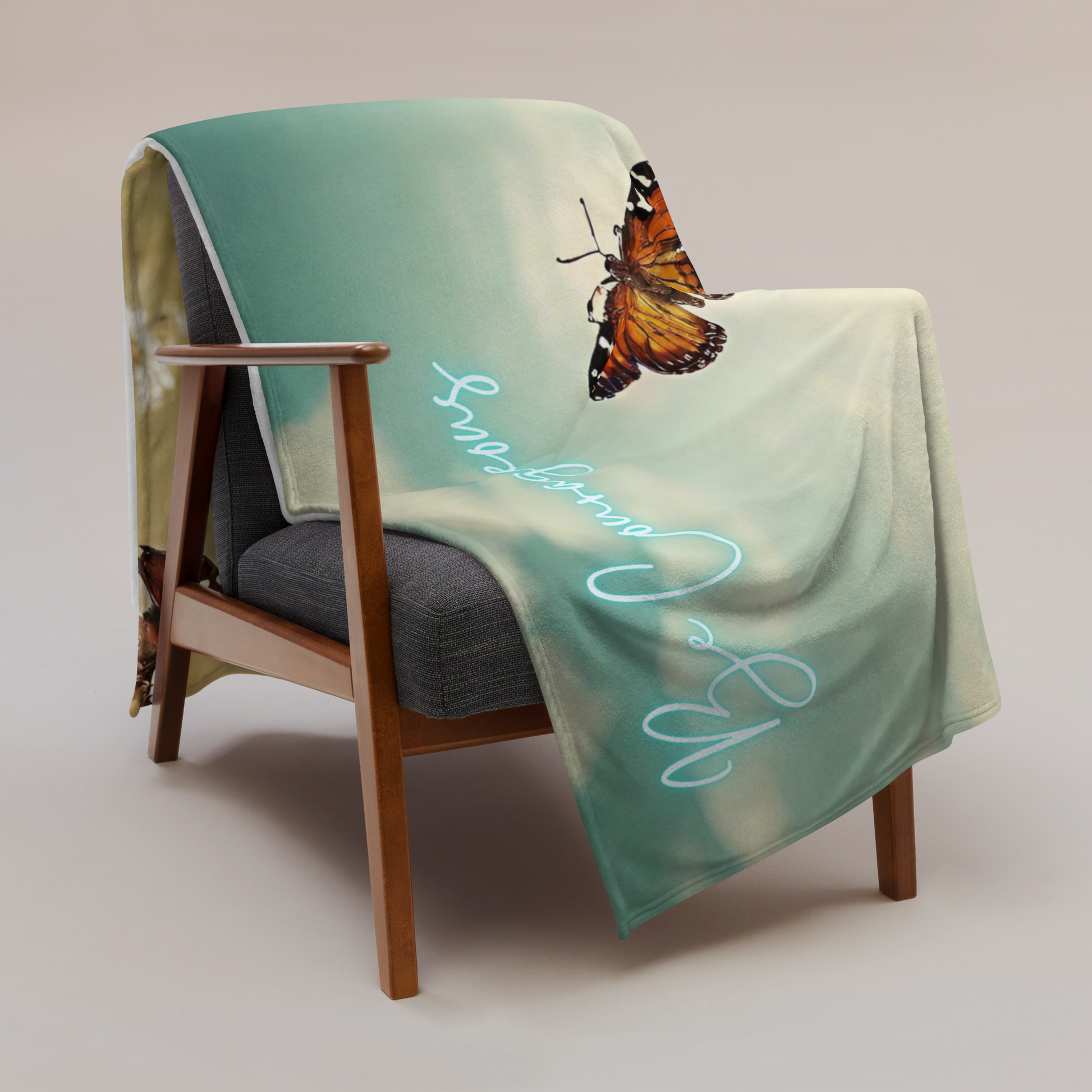 Why Choose This Throw Blanket? Selecting our Fluttering Courage Throw Blanket is choosing more than just warmth; it's an invitation to cocoon yourself in courage. Let the butterflies and empowering message elevate your moments of relaxation and reflection.
