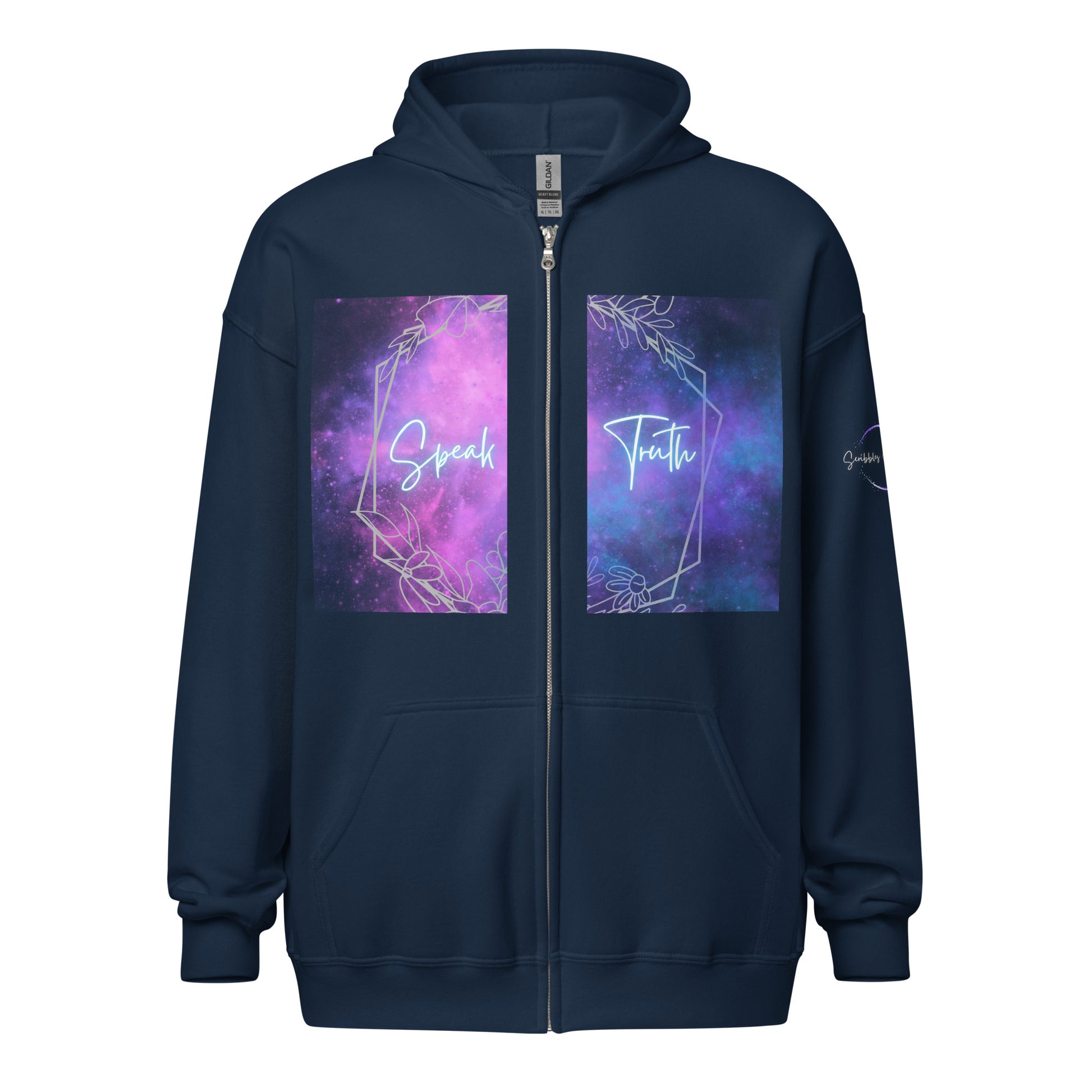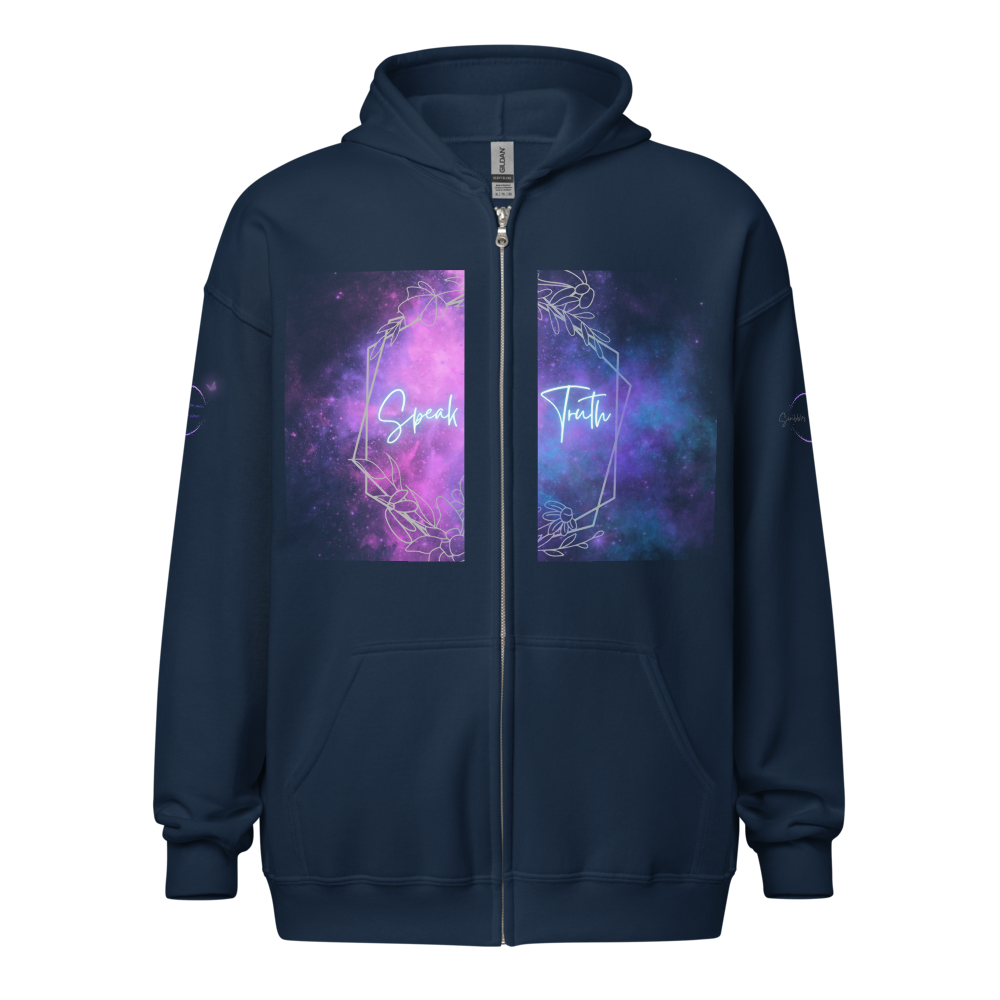 Wrap yourself in a cloak of courage with our Bold Utterance Unisex Heavy Blend Zip Hoodie. This hoodie is not just a garment; it's a testament to fearlessness, encouraging you to "Speak Truth" on the front and reminding you to "Be Brave" on the back. Crafted for comfort and designed to make a statement, this hoodie is your go-to for both warmth and empowerment.